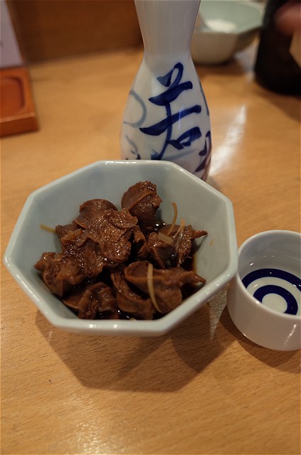 お代わりも大徳利で。付出しと刺身とスジ肉で、もうつまみは十分です。