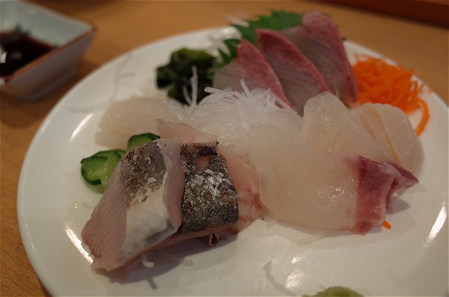 日本酒を飲むことは決めているので、造りの盛り合わせ(880円)。これは良かったなあ、蛇の目をすすりながらちまちまつまむ。