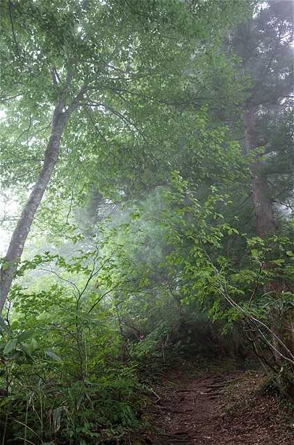 8:47 早月尾根は霧の中だ。先行する登山者を全員追い抜く。