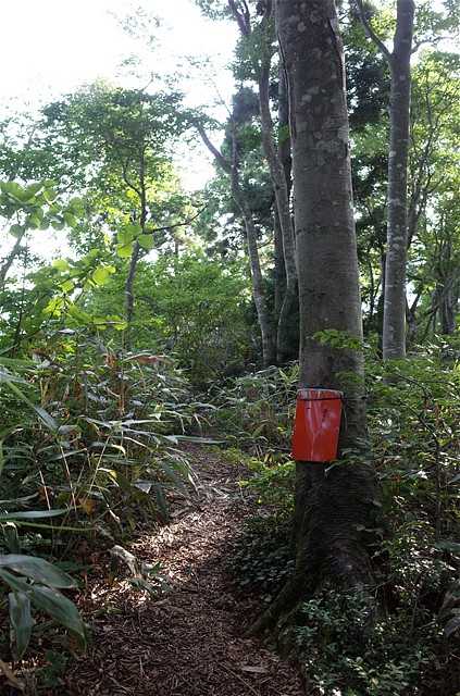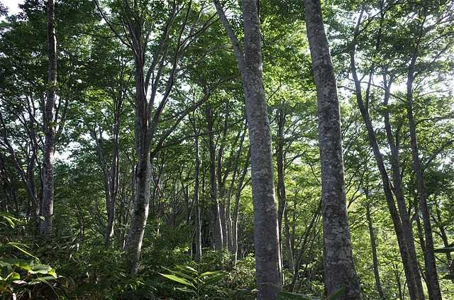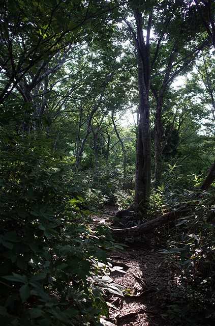 暑くなる前に登ろうと早出してきた。まだ日の当たらない林の中であるが、滝のように汗が流れる。適当な間隔で水分補給する。