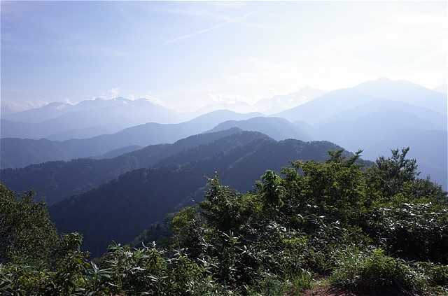 峰々が墨絵のように何層も重なり合っている。山の連なりが広大過ぎて、GRIIの画角(28mm)では収まらない。
