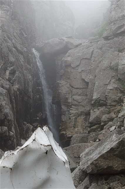 雪渓があって滝を越えることができず、左岸のガレを詰めた。約1時間高巻きをしていた。