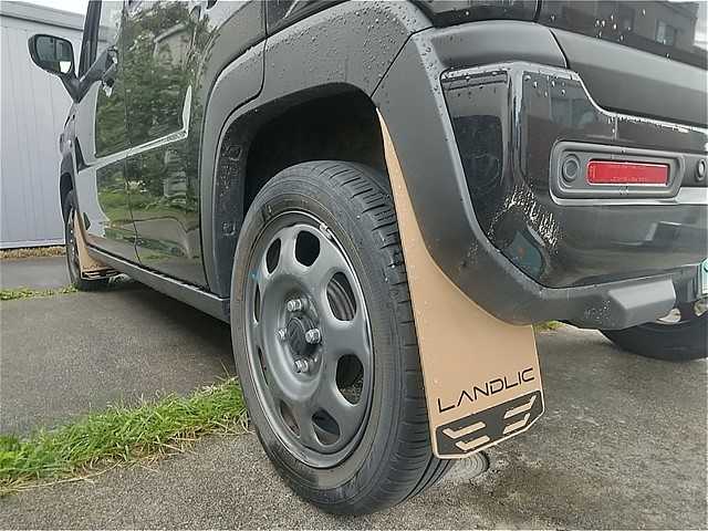 LANDLICのマッドフラップを付けた。JAOSのマッドフラップリア2枚の値段で、前後4枚が買えるのが素敵。あと黒とか赤が多いマッドフラップの中で、サンドベージュという色が、黒一色の車体に映える。会社の昼休みに駐車場で取り付けた。帰宅してからだと暗くなってしまうから。説明書を見て取り付けたつもりだったが、部品が残っている。まるで理解していない。最初からやり直す。フロントは昼休みで終えた。リアは夕方の作業だ(フロントで意外と時間がかかってしまった)。日没までの勝負。薄暗くなる中、何とか装着を完了させた。リアのフラップは、固定3か所のうち1か所が粘着テープである。圧着しにくいところだったので、当てにはしていない。2か所留めでも脱落することはないでしょう。ラパンSSでもマッドフラップは装着した。黒色だったものを自分で赤カルを貼ったのだ。見た目は格好いいのだが、雪国・富山では降雪時に問題になる。シャーベット状の雪がタイヤハウス内に詰まるのだ。マッドフラップがあると顕著。ラパンSSでは最終的にはマッドフラップは外してしまった。そういう苦労がありながら、今回また装着するのは、ハスラーがSUVだから。やっぱりSUVならマッドフラップでしょうという自分なりの考え。それと、街中にはハスラーがあふれているので、個性の主張もある。いかにもアウトドアをやってます調にドレスアップすることで、一般人にドヤ顔したい(下品だ)。