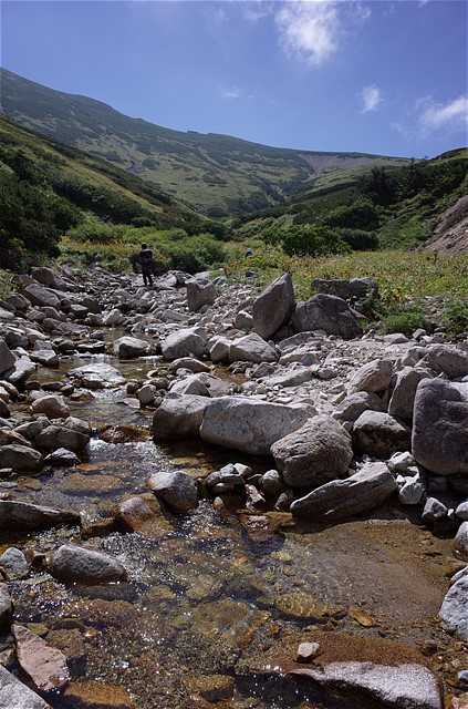 この夏は、ただ走っていてもつまらないから、ベアフットランニングをしていた。ペラペラソールで走り、地面と触れ合いたかった。まずは舗装路で始めて、自信をつけてから山道を走ってみた。短時間ではあるがそれなりに走れたので、アプローチシューズに使えそうだと思った。なにせコンパクトで軽いのが魅力的だ。足袋靴は日帰り登山でも試してみて、問題なく歩けることを確認した。それで、今回の鳶谷遡行のアプローチシューズとして使ってみた。登山活動に関しては慎重なので、かような段階を踏んでいたのだ。でも本番ではうまく下ることができなかった。尖った石を踏むと足へのダメージが甚大なので、フラットフッティングが基本。足を置く石は平らなものを見極める必要がある。足下の石を凝視し続けるので、遠方を確認できない。危険予知がしにくい。目を使うので意外と疲れる。必然的に歩幅は小さくなるので、同行者より速度は出ない。それでも下山前半はそれなりの速度で下りることができていた。薬師岳の登山道の三角点から下、折立ヒュッテまでの道が、とっても辛かった。足が痛くて速度が出ない。フラットフッティングで爪先に負荷がかかっていた。ヒザ痛はないのだが、とにかく足指周辺が我慢ならない。こんなことならトレランシューズを持ってくれば良かったと後悔した。高いクッション性に任せて、ガンガン下りることができるだろうから。個人的な経験から、足袋靴での下りは、1時間が限界だと思った。日帰り低山登山なら対応可能だが、泊まり装備を持った重量での下りは、足への負担が大きい。また、アルファルト上ならどれだけでも歩ける気がしたが、石がごろごろしている登山道では慎重な足置きを常に求められるので精神的に疲れてしまう。現時点では足袋靴を使いこなせていない。片道2時間以上の長時間使用は控えることにした。足袋靴歩きのレベルアップは今後可能なのだろうか?ネットで調べると、足袋で登山をしている人はいるみたいなので、サイトを覗いて参考にしてみたい。