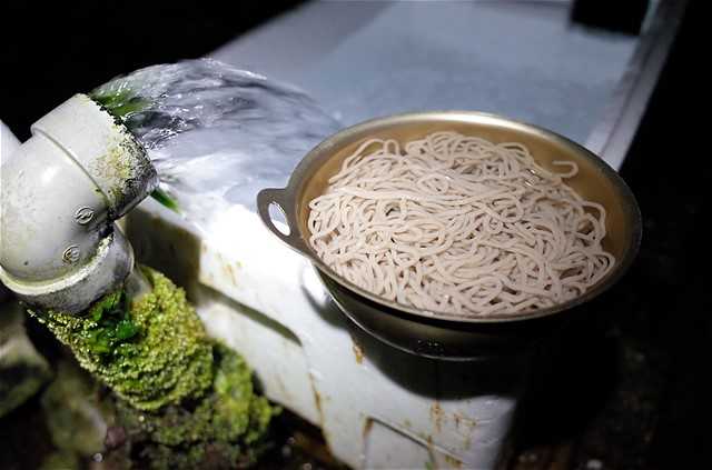 前ヨタです。昨日のブログアクセス数は、通常の2倍だった。ランニングは登山のトレーニングにならないって自分のブログに書いてあっただろ!が多くの人の目に留まったみたい。タイトルが刺激的w頭に来た勢いで一気に書いた。下手に推敲するよりも心の中から湧いてくる文章をそのまま書いた方が、人の心に刺さる文章になるのだろう。週末は焚火キャンプをしていた。さんざん飲み食いしても締めには何か食べたくなるもの。最近気に入っている食材を紹介しよう。水でほぐすだけで食べられるそば2食入りである。マルちゃんの「つるやか そば 2食入り」シマダヤ「流水麺® 2人前」がスーパーで見かける双璧である。今回はマルちゃんのそばである。個包装になっているのが便利ね。黒部川扇状地の湧水で、さっとほぐす。濃縮めんつゆを水で希釈し、天かすをたっぷり入れて完成。電気もガスも使わない、調理時間ゼロ分メニューの完成です。それでいて、馬鹿にならないそばのうまさ。カップ麺よりお手軽で塩分も少な目。夏のキャンプ飯はこれしかないでしょ。お勧めです。残ったもう1食は、翌朝食べるのだぞ(やまやろうはそば好き)。キャンプと言ったら焚火をしないといけません。カンバの皮を焚き付けにして一発着火。寒くないので焚火は不要だが、やりたいのだ!身体から距離を置く。美しい炎を眺めながら日本酒を楽しむひとときは最高である。