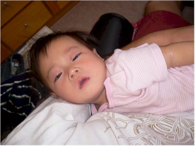 今日は鼻水・咳が結構ひどかったけど、何とか会社に行きました。ちょっと辛かったけど、何とか仕事を終えて家に帰ってくると、遥人は元気そうだったんだけど璃杏とママは完全にダウン・・・ママは微熱だけど璃杏はまだ38℃以上ありました。あしたまた病院に行く予定だったんだけど、前倒しで今日病院へ連れて行きました。病院では明日まで熱が続くようだと川崎病・肺炎・とっぱつもありえるということで、明日熱があったら採血させて欲しいと言われました・・・なんだかとても心配です。とりあえず先日遥人が溶連菌の検査をしましたが陰性。今回は璃杏にプール熱の検査をしましたが陰性でした。おおきな病気に発展しなきゃいいんだけど・・・咳や痰・鼻水がひどいので、前回とは違う薬をもらって家に帰りました。夕飯を食べて璃杏に薬を飲ませると おえぇ~って全部吐かれてしまった・・・そのあと璃杏は夜あまり眠れなかったこともあり、数時間爆睡しました。何時間かたって璃杏が目を覚ますと何だか顔色がいい。熱で赤らんでいた顔がいつものように真っ白に見えたので熱をはかってみると36.9℃!!!やった!熱下がったぞ!!!熱が下がったこともあり璃杏も動きが活発になってきました。でもまだ油断はできないぞ!遥人も熱が上がったり下がったりしていたから。でも遥人のときは初日から熱が上がったり下がったりしていたけど、璃杏は熱が出っぱなしだったのでこれで熱は下がるかなぁ?あとは咳と鼻水が治ってくれればいいんだけど・・・鼻水璃杏!