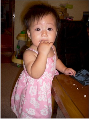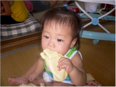 どうやら璃杏もはまっているらしい・・・今日の夜にママが璃杏に水をあげていました。璃杏も水が好きらしいと言うことでパパも真似してあげてみました。まだ上手には飲めないけど、ちょっとずつ飲んでいました。ウチの家族は全員で水飲んでるんだね。そりゃすぐに水がなくなるわけだ!!!そして、璃杏の変な癖をひとつ!今日気がついたんだけど、璃杏が口笛を吹くような口をしてフーフー言っています。たまにピーピー口笛がかすかに鳴っています。今まではやっていなかったと思うんだけど、なんだろう?今日だけかな?夕飯を食べているときに璃杏が眠たそう。はじめはモグモグご飯を食べていたんだけど、急にご飯食べる勢いが衰えてきたから、あれって思ったんだけど、どうやら眠たいようだ。遥人はご飯を食べ終わってからバタッと倒れこむようにねたんだけど、璃杏は食べながら寝ちゃうみたいです。ママと二人で見ていて大笑いでした。