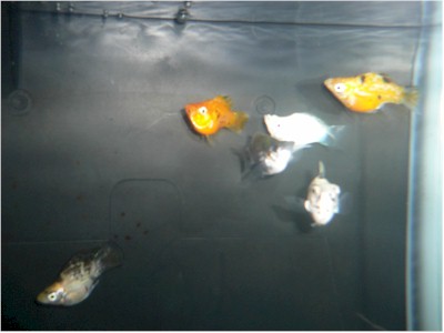 家の水槽で飼っていた金魚が4匹も死んでしまった・・・水を全然洗っていなかったので病気になってしまったのが原因です。今日は水槽をきれいに洗うことにしました。遥人もだいぶ調子が良くなってきたので(まだ咳が止まらないけど)一緒に手伝ってくれました。でも、遥人は今度は金魚じゃなくてきれいな魚を飼おうっていいだし、熱帯魚屋さん(トロピランド)へ遥人と二人で行きました。どのくらいいたかなぁ?遥人は欲しい魚がなかなか見つからなくて、「まだ?」って聞くと「今探してるんだよぉ」って言うばかりで全然決まりません。1時間近くいたかなぁ?ようやく飼いたい魚が決まって、購入しました。やっぱりまだ調子が良くないのか?帰りの車では遥人はまた寝てしまいました。水槽をきれいにして水を作ってから水槽に魚を放しました。不覚だったのが魚の名前を忘れてしまった・・・確か卵胎生メダカの種類で、なんとかモーリーだった気がする・・・よくわかんないけど。この魚はいろんな色の魚がいて、その中から遥人が1匹ずつ「これがいい!」って指定して買ってきました。店の水槽ではたくさん魚がいたのできれいでした。今は6匹だけど、どんどん増えるらしいので増えるのが楽しみです。水槽を写真撮ると、光っちゃって良く撮れない・・・そしてきれいにしたはずの水槽の外側が汚い・・・外側もちゃんときれいにしなきゃ。今日もうひとつ驚きのことが・・・璃杏の上の歯が出てきました!!!早すぎない?と思わせる感じです。残念ながら写真は撮れなかったので、かわいくとれた写真を1枚!