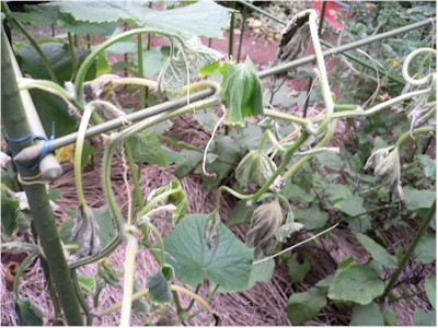 今日は土曜日!久しぶりの休みの気がする・・・そう、先週は風邪をひいていて何も出来なかったからだ。今日もどこかに出かけようかと思ったんだけど、明日出かけることもあり今日は庭の畑仕事をしました。水はあげていたんだけど、雑草もたくさん生えていたし、肥料もあげていませんでした。今日も暑くて、汗をダラダラかきながら、雑草抜きをしました。そして肥料をあげました。我が家の期待の星「すいか」は着々と大きくなってきています。ネットをはっておいたんだけど、実が大きくなってネットが足らなくなってしまったので、大きいものと取り替えました。キュウリもかなり伸びきってしまって、1.8メートルの支柱では足らなくなってしまい、そして隣同士の木が絡み合ってしまっています。でもどんどんキュウリがなってきていて、毎日数本ずつ収穫できるようになりました。今年の夏はキュウリを買わずにすみそうだ。