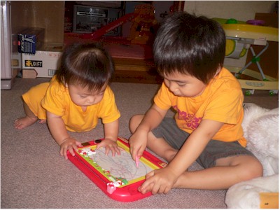 今日は・・・なぜかママの実家にいます。仕事しているときにママから電話があって、実家でご飯をご馳走になることになったって。とくに理由はなかったんだけど、この間掘ったジャガイモ料理を堪能させていただきました。献立はコロッケです。残念なことに食べることに夢中になってしまい、写真を撮り損ねてしまいました。とってもおいしくてついついコロッケを7個も食べてしまいました・・・。写真を撮り損ねたのがホントに残念だなぁ。特に写真がないので、子供達の写真を乗せておくことにします。