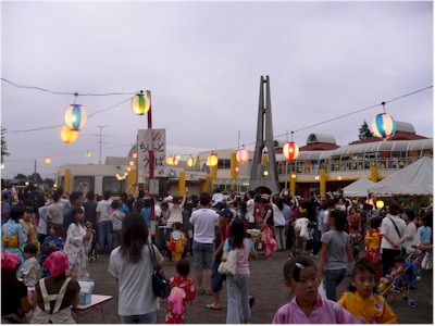 今日は麻の実幼稚園の夕涼み会があるということで、家族揃って歩いて出かけました。幼稚園に近づいてくると、自転車が溢れているのが目に入りました。まさかと思ったけど、思ったとおりで、園庭に入りきらないくらいの人で溢れていました。とりあえずヨーヨー・金魚すくい・お菓子・焼きそば・から揚げを買って外に出ることにしました。皆さん敷物とかを持ってきてすわっていました。用意がいいなぁ!っていうより、ここまでして夕涼み会の会場にいたくないなぁって思ってしまいました。さて、麻の実幼稚園をあとにして、ちょっと物足りなかったので東村山駅の盆踊りに行きました。麻の実幼稚園からそのまま歩いていったんだけど、結構遠かった・・・会場に到着するちょっと前に遥人が寝てしまいました。遥人が寝ちゃうと、盆踊りをただ見ているだけになってしまうので、お腹もすいたしちょっとだけ見たら帰ることにしました。でも、帰りが一番大変だった・・・。帰っているときにちょうど遥人が起きて抱っこって言い出すし、すでに結構足が疲れていたのでとっても疲れた・・・今日は何だかラーメンが食べたい気分だったので、家に帰ってからすぐにママの実家のそばの「すぱいす」ってラーメン屋さんでたらふく食べました。う・う・う食べすぎたぁ!!!