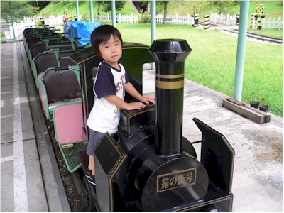 今朝もあまり天気は良くありません。結局昨晩は明け方まで雨が降り続けていました。このままこのキャンプ場にいることも考えましたが、今日もあまり天気が良くなさそうなので、以前ママが泊まったコテージが近くにあるということでそこに移動することにしました。福島県なんだけど、このキャンプ場から車で30分くらい?の距離なので、結構近かった。コテージに電話してみるとたまたま1部屋だけ空いているということで、助かりました。さて、このコテージに向かう前に1日目のキャンプ場にはいろいろと遊ぶところがあります。まぁそれでこのキャンプ場に決めたんだけど(しかも1泊2000円と格安だし)。はるとも外で遊べなくてストレス溜まって荘だったので、そこで遊んでから移動することにしました。まずは汽車にのりました。この汽車は足でこいで進むんだけど、結構大変・・・十数人乗れる汽車にたった6人で乗って、しかも漕いでいるのは3人だけ・・・結構辛かった。次に、いろんな自転車があって、遥人と二人で乗りました。5~6種類くらい乗ったかな?足で漕ぐものばっかりで疲れた・・・遥人のお気に入りはこのパンダかなまだまだ遊び足らないようで、移動するときには「まだ遊びたい」って泣いてました・・・さて福島のコテージ「ウサギの森キャンプ場」へ向かっている途中で、お腹がすいたので蕎麦屋さんによりました。ここのそばがおいしかった!!!水がきれいと言うこともあり、蕎麦屋がたくさんあったんだけど、その中でも当たりでした昼ご飯を食べて、今日の夕飯の買出しをしてからウサギの森キャンプ場へ行きました。ママから聞いていたこともあり期待していったんだけど、ほんとに期待通りのところでした。とってもきれいなコテージで、しかも広い!1泊12000円と大人二人子供二人ではちょっと高めだけど、とてもよい所でした。さて明日は何して遊ぼうかな?