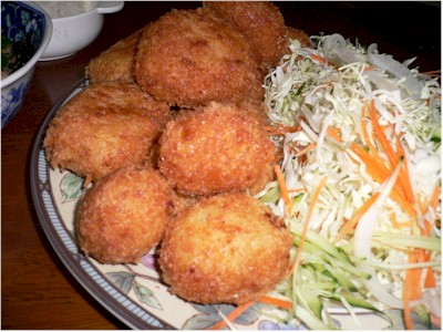 今日は夜ご飯をご馳走になりにババの家に行きました。今日のご飯はコロッケです。しかも、遥人が作るのを手伝ったと言うことでした。遥人が作ったやつは、ちょっと小さいです。でも味は抜群でした!ついつい食べすぎちゃいました・・・