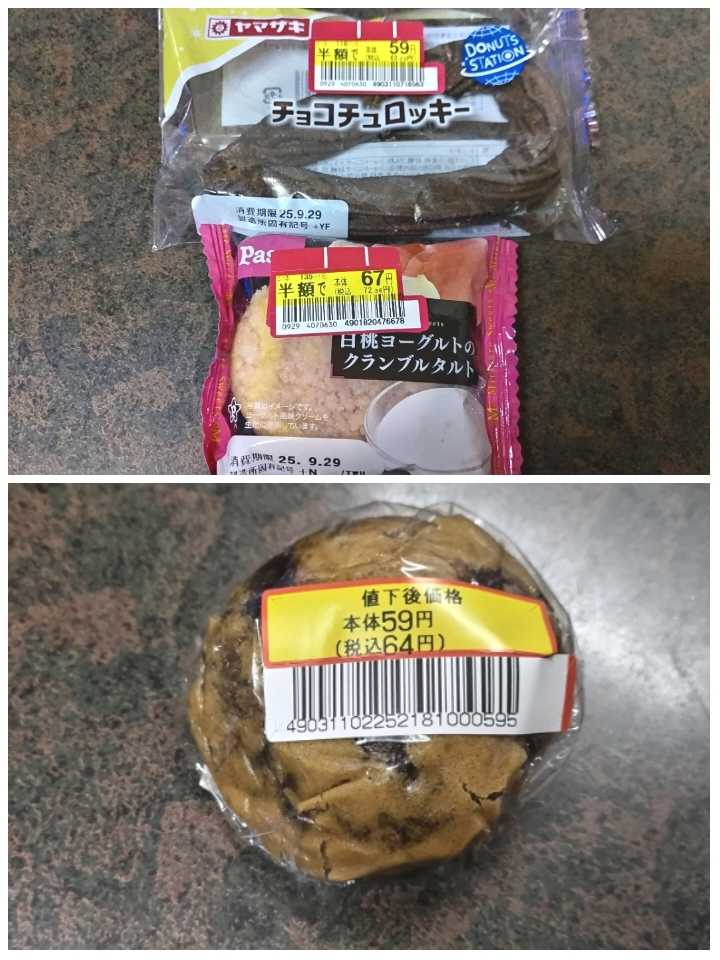 歌う前に2個食べて、エルフで疲れた身体を癒すために1個追加…!チョコチュロッキー¥64白桃ヨーグルトクランブルタルト¥72黒糖やぶれまんじゅう¥64いやーあんこ美味しい…癒やされた…