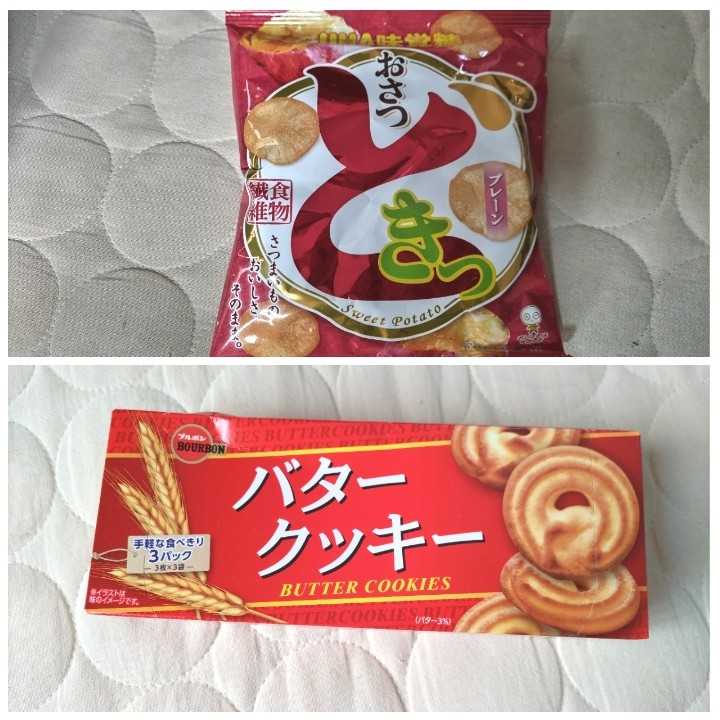 翌日休みと思うと…なんか楽しいことしたくなるよね…セブーレ¥108おさつポテコ¥69バタークッキー¥108部屋にあるとダメな時期ですハハハ!美味しかったー!