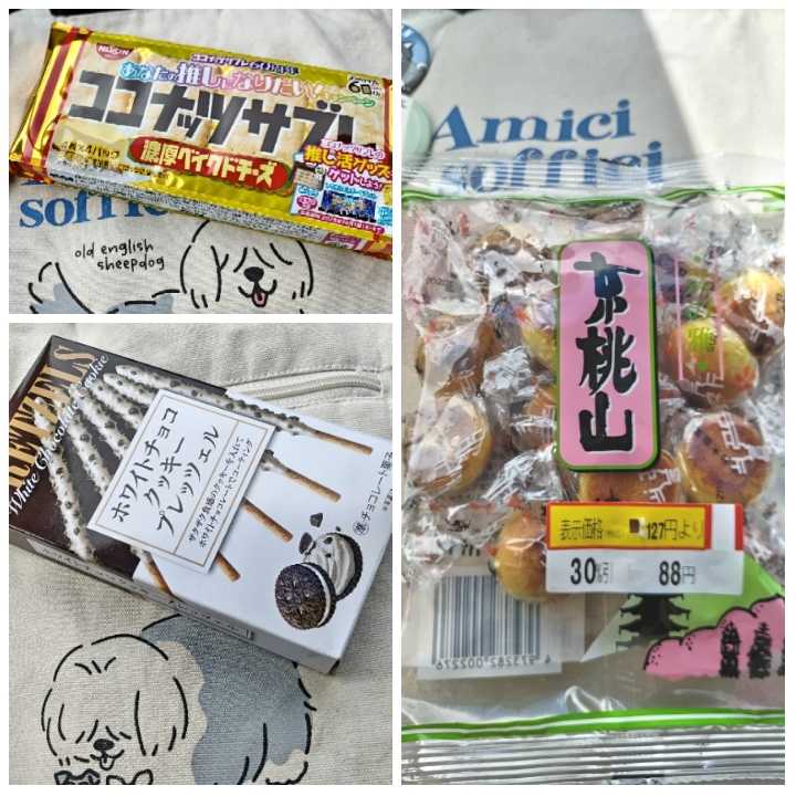 今日のご飯はお菓子です!ココナッツサブレ濃厚ベイクドチーズホワイトチョコクッキープレッツェル京桃山サブレうまーホワイトチョコうまー白餡うまー(*ノ・ω・)ノ♫お菓子ばっかりもなーと思って三角よもぎ小豆蒸しぱんシャインマスカットロール投入!口の中が甘くなったのでビールにビーノごま担々!わたし大好きおさつどきっ塩バター!¥119だったー嬉しいー!ピコラ蜜芋味キャラメルコーングランデ抹茶ミルク おさつポテコ値段書いてないのは¥100くらいです。色々いっぱい食べて!幸せでした!!芋お菓子楽しい季節楽しむぞ!