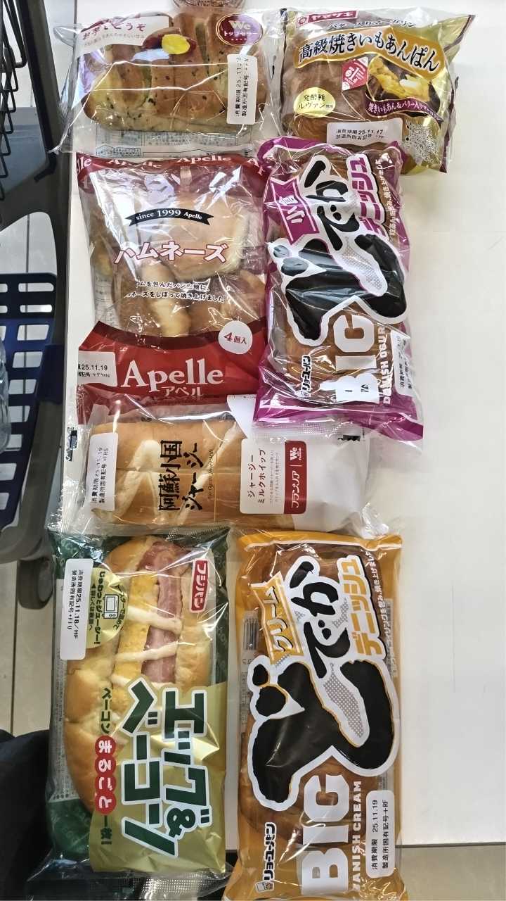 犬フェス帰りにトライアルでお買い物!ドデカモンブランケーキも惹かれましたが…なんとなくパン気分! ケーキの値段くらいのパン買うぞ!お芋でどうぞ高級焼きいもあんぱんハムネーズこの辺でおなかいっぱいになりましたが…せっかくなので全部食べよ〜(*ノ・ω・)ノ♫どでかデニッシュ小倉阿蘇小国ジャージーミルクホイップどでかデニッシュクリームエッグ&ベーコン確かどれも¥100前後だったはず…美味しかった楽しかった!次はピザ2枚とかも楽しそうだな〜♪