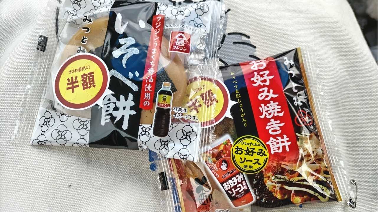 わー初めて見るー美味しそうー!お好み焼き餅磯辺餅2個で¥104だったかな…美味しかったよ!ソースと醤油楽しんだw