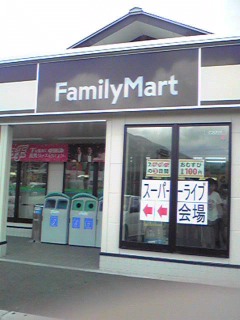会場横に昨年できたファミマ(画像、島の美観を損ねないように土色バージョン)をいったりきたりしながら体力温存する。
