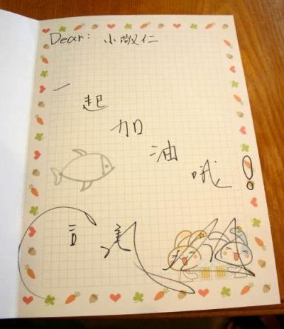 日頃の怠慢のつけなのでしょうか、お休みなのに、お仕事です。机の上には本人署名・押印の申請書がてんこもり・・・。パソコンの普及に伴い、手書きの文書や手紙を見かけなくなったが、はんこ文化の日本でも諸外国と同じように署名(サイン)は必要です。思わぬ方が達筆だったり、あらと思われるような悪筆の方がいたり・・。丁寧な話し方の人が、自分の名前をなぐり書きされるところに出くわすと、ちょっとビックリしたりします。上手下手は別にして、意外にと、思うという事は、筆跡にも性格がでるのではないかと・・・。最近、テレビで筆跡心理学として出没されていらっしゃる、この方筆跡心理学 根本 寛普段は経営コンサルタント・中小企業診断士をされてる方のようです。この方のセミナー等では、筆跡心理学のお話はつかみなのでしょうか、はたまた本業なのでしょうか・・・有料鑑定も受け付けているようです。ある番組に出演されての内容によると、1、たとえば大という字の上の突き出た部分が長いと、大物らしい。2、へんとつくりが狭い字の方は心が狭く、広い字の方は心も広いそう。3、HPにも載ってますが口の場合の節筆の開きにも性格がでるとのことです。 また、口の上の接点が空いている字の人はお金が入り、 下の接点が空いている字の人はお金が出て行くそうです。私の場合は、C型の堅実型みたいですですが、ところで、旭さんの場合はどうなのでしょうか・・・。心が広くて、融通型のような気がしますが・・・。先月マレーシアのやけどを負った少年へのメッセージところで、結城(モイラ)さんによると、手書きの文字は人それぞれにいろいろなクセがある。見るからに大きい文字を書く人は、おおらかで、物事にこだわらない。積極的でリーダーになれる素質もある。小さい文字の人は、几帳面で謙虚だが、ちょっと消極的で神経質。角ばった文字は慎重で堅実だが、社交性はあまりない。丸い文字なら、社交的で要領がいい。でも、少し依頼心が強いところが。細長い文字は頭の回転のよい人に多い。クールなタイプに見えるが、内面はけっこうデリケートで優しい。極端に右肩上がりの文字は快活な人だが、やや利己的。負けず嫌いで、平凡な生き方を好まない。右肩下がりの文字なら、個性派で、少し理屈っぽいタイプ。右肩上がりと右肩下がりの文字が混じっている人は、物事を敏感に察知するが、むら気なところが。縦書きをした場合に続け字を書く人は、行動力があり、決断が早いが、早とちりをしやすい。縦書きをしても一字一字をきちんと離して書くなら、物事をよく考えてからでなければ、行動に移さない。地道に生きていくタイプだ。十六夜の字は、どちらかというと大きくて丸く右肩上がりと左肩上がりが混在していて、かつ縦書きにすると続け字を書きます・・・当たっているのか。 そして、こちらは昔の旭のメッセージ、忘れないでねって縦型で角ばってて右肩上がりで、へんとつくりの間も狭い字のような気がします。旭も、もまれて成長したのね・・・。