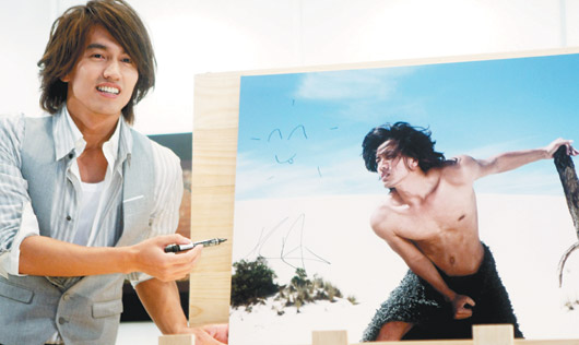 今日は、風が強かったですね。子供たちが卒業をした小学校の閉校式がありました。娘も参加し感謝の気持ちをこめて、風船を飛ばして別れを惜しんだそうです。台湾の話の続きを、少し・・・・・。友達とはジェリーの台北サイン会場集合ということで、ツアーではなく、往復のエアーとホテルを取っての一人旅です。空港からのホテルの地元バスに乗ることにも慣れました。夕方頃、ホテルをチェックイン後、会場につき深夜に台北に着く大阪・東北迷友達を待ちながら、その日にお友達になった方々と、レジャーシートを敷いて談笑。さすが南の国、日本と違い、それほど寒くはありません。お腹がすいたので、隣の酒場(オープンカフェ)のようなところで、食事を取ることにしたのですが、深夜ではありますが、なぜか若い男性ばかり・・・・しかも・・・・日本で言うと新宿二丁目・・此処男性と男性が手を繋いで、仲良く出かけていきます。男性が一人で行くと、声をかけられる、そういう場所でした^^私達、日本人おばさん三人組は相当場違いでしたが、可愛いボーイ(けっこう好み^^)に、日本語で無理難題を言いながら、お腹がすいていましたから、台湾の香り(五香粉)の料理をしっかり食事をしてきましたわよ。今回、深夜に一人でホテルに帰ったり、繁華街で一人タクシーに乗ったりしたのですが、全然、怖くなかったのは、不思議。まさかの野宿もすべて、ジェリーに逢うためという、大義名分なため、テンションが高めだったのでしょう♪ほとんど寝ないで夜も明け(笑)、朝ごはんは友人達と分けたテイクアウトのザーサイの台湾麺、なかなかいけます♪ほとんどポンチョ姿で座り込み、整理券を配るまでの時間が、寒くて眠たくて、雨に塗れ辛かったですね。整理券をいただき、ランチは近くのカラオケも有る飲茶店さん。私達のチョイスは正解でした。いよいよ、サイン会です。ジェリー登場後も前の傘の波と、黄色い壁(体の大きい黄色い雨具を着た香港ファン達、黄砂か?のような)にはばまれ、背の低い私には彼が全然見えない、だからか、睡魔に襲われ、まさかの立ちながらのウトウト・・・・(爆)そして、いよいよ私の番です。私の番の前でジェリーは一旦休憩を取りました。舞台の下の至近距離の場で、がん見(笑)飲み物を口に含むと、お口の中でクチュクチュしてから、飲む姿がとても愛しくて可愛い。雨が強かったので脱げなかったピンクのポンチョ姿で舞台に上がった私の姿を追うように、ジェリーはほほえんだ優しい顔で、お迎えてしくれましたいままでにないシチュエーションに、戸惑い胸がいっぱいで、握手も出来ず、ただ彼を見詰めるだけでサイン終了したかな・・・。後ろのお友達が、ソロコンサの話を聞いたら、それには答えず「楽しんでね♪」「お疲れさま。ありがとう♪」以外の日本語の語呂が増えたようです。今回の十六夜は、前回のスナックのママではなく、やまとなでしこ、乙女のままでしたの・・・・。そして、高雄へ新幹線で移動です。つづくかも・・・・。