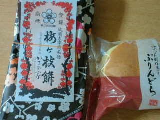 デパートの九州物産展で買いました。福岡太宰府名物松ヶ枝餅は焼き立てなので美味しかった。その娘は昨夜から、大学のお友達と熊本へ遊びにいきました^^私は風邪をひいたようで、お薬を飲んで安静にしたいんですけれど・・・。