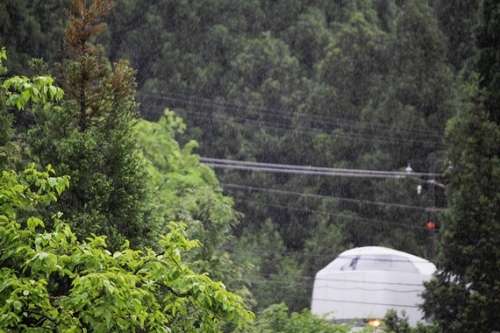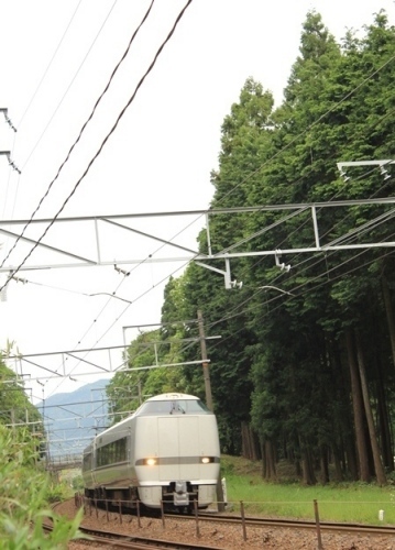 雨でしたね昨日、今朝になるのかな?結局 雨音を聞きながら夜明けを迎えてしまいました。それから2時間ぐらい寝たかな?しらさぎ号通過5分位前に到着、慌ただしく2,3枚撮って、スーパーでお弁当買って、急いで食べて仕事へ行きました~~体に悪い事ばかりしてますね。でも精神的には凄くストレス解消できて外の空気も吸って、季節も感じて心地よいんですよ。緑の中を突き破るように現れてきたしらさぎ号です。雨で背景がすっきりとしてないですね~これはダンナさんと全く同じ構図でした~~藤の花狙いでしたね
