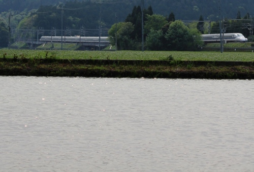 ついこの前まで青々として綺麗だなぁ~と眺めていた麦畑もう黄金色に輝き始めました。関ヶ原へ向かう時にいつも走る国道から見える新幹線ズームしてみるとぉーー 神社の傍のため池がある土手が見えます。土手に登っている自分を想像してしまいます。。。今日は黄色先生下りましたね。没。。。。。上手く撮れない。。。隠れても見えてますよ~~