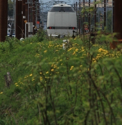 連休後半は雨のようですね明日もまた北びわこ号へ行くそうです。雨が・・・・雨も味方にしましょう。線路端にはいたるところでタンポポの花が咲いてきてますねシャッターチャンスに誰か綿毛をふぅーとしてくれないかな?ADさん募集中~~日本海?んなばかな・・ね、気になる日本海この日の最後はいっきに東へ戻り垂井の蓮華畑へ軽トラを子分につけて走る新幹線