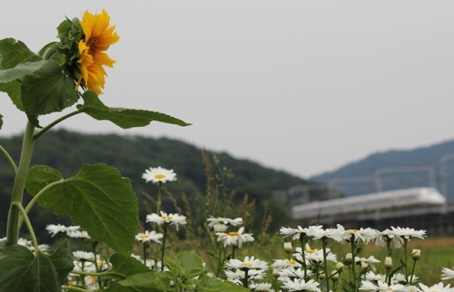 向日葵 先取り!今年初めての見る向日葵。花屋さんに並んだ切り花を見たことはありますが畑に咲いた大輪の花は初めてでした。今日は写真やたら多いです・・・・撮りまくってしまいました~~~~~~~~右下に蝶がいるんですが・・・・なんとかシジミ・・・名前わすれました。他にもモンシロチョウ・アゲハ・モンキチョウいっぱい。花もいっぱいでした。アゲハもどの花も管理が行き届いていて立派な花を咲かせていました、畑の中まではいれないので写真が撮れないのが残念。ちょっとしっとりと「行って来いよ~~」と見送っているみたいですね。新幹線と花の世界にどっぷりはまりこんでしまいました。そして、流し!うわっ、少し上達。 自画自賛ですので、聞き流してください。ねっ、少しうまくなってきた、、、よね