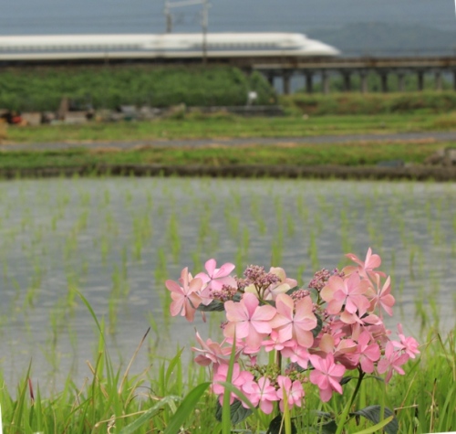 2,3日前に東海地方も梅雨入りしたのでしたね、今日は昼過ぎから雨になりました。紫陽花と新幹線のブログUP見かけるようになりました。関ヶ原はまだ少し先のようですね、2分咲きといった所でしょうかコラボ狙える方を羨ましく思います。・・・・・・・・・・・・持ち込み紫陽花・・・・ぼそっ・・・・・十六町のとある神社の傍の畑で小さな畑に何十種類もの花が咲いていました。野菜も、 スイカも茎を伸ばして四方八方に葉を広げていましたねーー通いたくなる畑でした明日は子供達の面倒もないし、まーさんも仕事だし、ひっさしぶりにのんび~~りの休日です。何をしましょう。温泉でも行こうかな~~