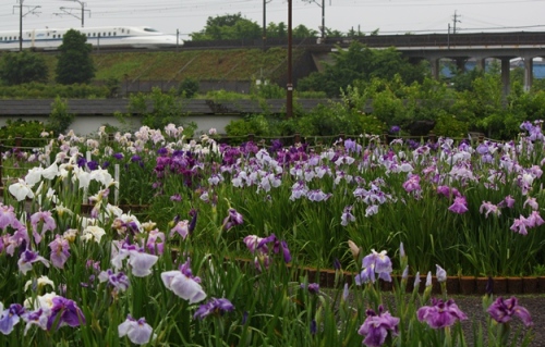 よく降りますね明日も雨模様のようです。仕事だからどっちでもいいや と思っていたら・・・明日朝早くパチリへと行くそうです。起きれるかな?・わたし。今 りんちゃんの浴衣ドレス縫ってます。レースをいっぱいつけて 可愛い~~これからまた徹夜でちくちくしようと思っていたのですが~~~~寝なくては、、、6時起床、無理っぽい。起きれないっぽい。作り始めると一気に仕上げてしまいたい性分なので困ったもんです。今日は雨の中一宮市へ出かけてきました。菖蒲が咲く公園です。ここは前にえあらいんさんが撮影された所みたいですね。記憶に残っています。菖蒲はもう終わりかけのようでした。4,5日位遅かったようです。何種類位あるのでしょうか、色とりどりの菖蒲が咲いていました。綺麗でしたよ~~帰り道ドクター東海を車を停める所探してたらあっ、 行っちゃった。