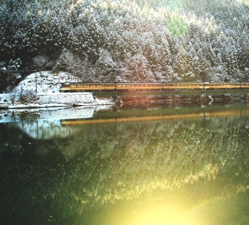 こんばんはみなさま風邪などひいてひいていらっしやいませんか?我が家は 子供達がインフルエンザにかかってしまい昼間は子供達の面倒を見いの ママが勤めから帰って来たらバトンタッチして職場へ走り~の間に家族の食事を作り~~のでくたくた状態でした・・・・・・ダンナさまは こんな私を理解してくださっているのでしょうか?ねぎらいの言葉もないのですが・・・ブログやってると こんな事も遠まわしでツンツンできていいですね(笑)さて、お正月の3日雪の高山線へ行く事ができました。yamagaraさんにすっかりお世話になってしまいました。お車もお願いしてしまい、雪道お疲れになった事でしょうねいつもお世話になってばかりですみません。ありがとうございました。水鏡がまるでスッポットライトのようでした。美しい雪化粧を見る事ができて朝早くにでかけた甲斐がありました。綺麗でした~車を停めたらすぐに!!何も考える暇もなくシャーッター★見れて良かった! 撮れて良かった!ダム湖の上で気になる階段をyamagaraさんと登ってみたらびっくりするような絶景~~!!!湖畔に写る絵画のような木の葉の緑 ダンナさんに先越されてしまいましたが私も見逃しませんでしたよ-----ただ出来上がった写真がピントが何処にもあっていなくて、、、、未熟さを痛感いたしました、、、、、、道を走っていると綺麗!! ここいい~~!!とびびっとくる直感は人一倍感じるんですけどね、技術が、、、、、
