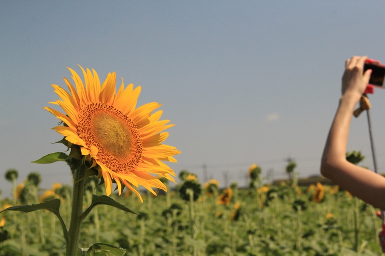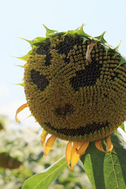 一本だけこっちを向いてくれてる向日葵がいましたので、、