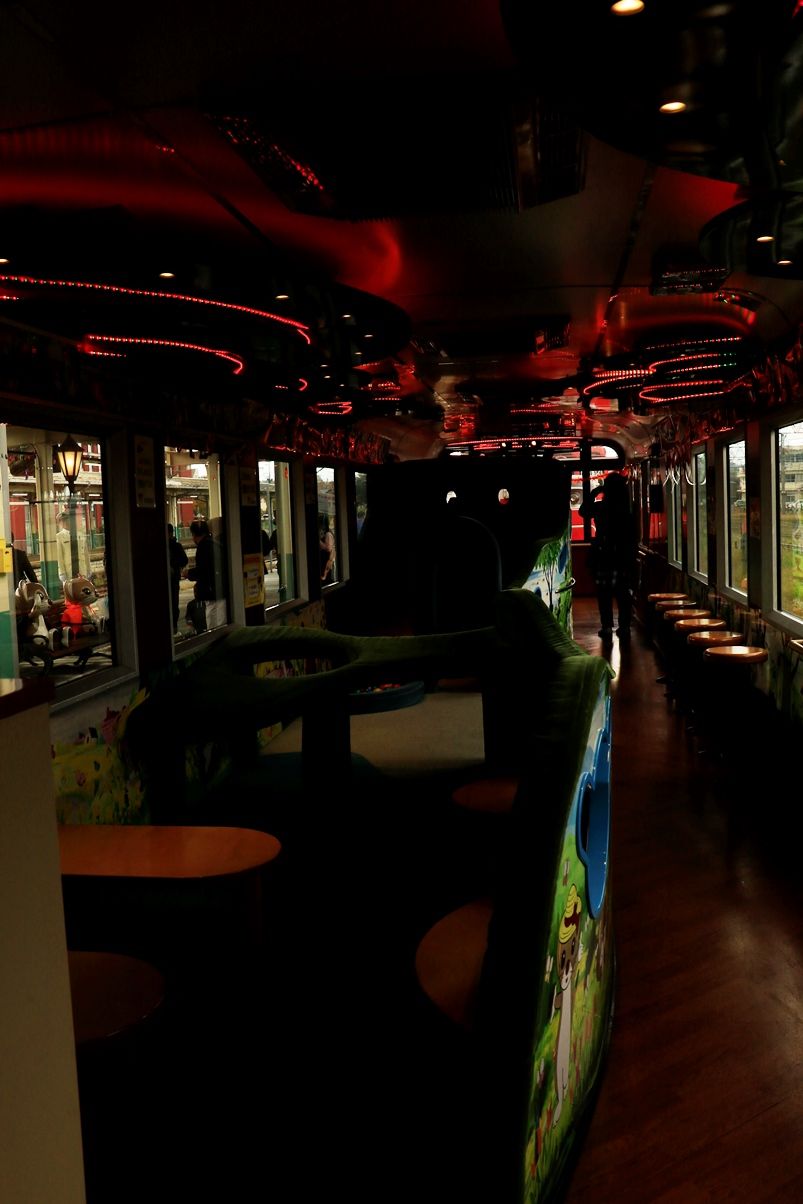 ちょっと不気味ですけど、、、車内には子供達が遊べるように滑り台とか、潜り込めるような穴?