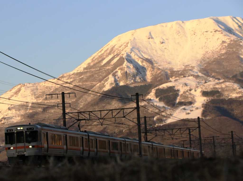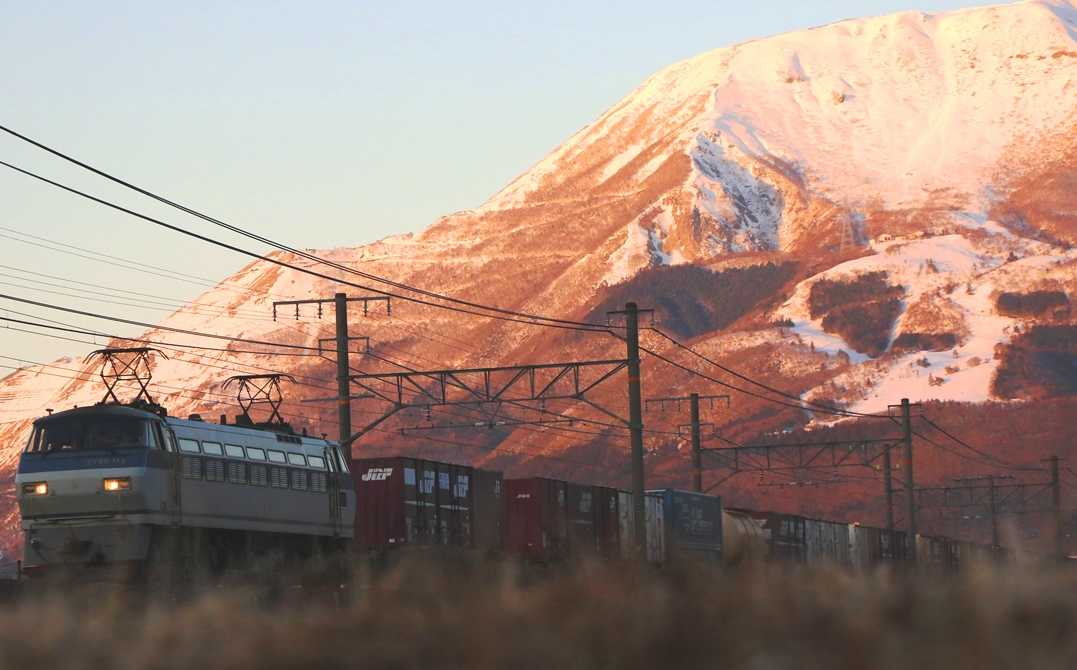 伊吹山バックの貨物を撮りたくて。。少し移動して夕陽が落ちるのを待ちました。