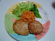 今日の簡単美味メニューは材料 豆腐絹1丁 挽き肉100g パン粉(ひとつかみ) 卵1個 塩コショー(少々)最初にキッチンペパーで豆腐の水切りをしておきますボールに材料を全部入れてコネコネ!!(普通のハンバーグよりやわらかいので)あとは、フライパンで焼くだけですよ~ふんわりハンバーグって感じかな~!!とにかくやわらかくて主人もおいしいと言って食べてくれましたあなたは??醤油派??ソース派??デミグラスソース派??かな~ちなみに、添えてあるグリーンは、菜の花のボイルです今日は、妹を無事に空港に送ることができましたが・・・なんと姪っ子ちゃんは、昨日の夜中にお腹が病みだして今日も学校お休みで・・・私の母が姪っ子ちゃんの家に、面倒見に行く事になり昼間は、わりと元気のようですが。。。食べられなくて可愛そう今日は、おかゆさんでがんばっています・・・スッキリ治るまでには、まだ時間かかりそうです妹を送るときに母も送りポカリを届けてもらいました。と言う事でショッピングは、、、また今度母が楽しみにしていたのですが孫ちゃんが大事ですもんみてあげないと・・・です。帰ってきてからFAXいれてあげました早くよくなりますように~って!!!みなさん御心配ありがとうございました~!!今日帰ってきてからコメントを見て嬉しかったです