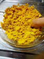 久しぶりにスイーツ作ってみました☆ 秋のスイーツ!!かぼちゃ蒸しパン!! うちには、かぼちゃが安い時に、蒸してつぶし ジッパーに入れて冷凍しているかぼちゃが あったので 簡単にホットケーキミックスで作りました☆ ホットケーキミックスの粉で生地を作り、カップに入れます。 かぼちゃを(牛乳+砂糖+バター)少々で、 ペースト状になるくらいの 硬さに作り、あとはカップに入れるだけ 15分程蒸して出来上がりでした ふっくらに仕上がりました☆ お昼に牛乳でいただきました かぼちゃの部分がしっとりで蒸しパンは、ふんわり!! 簡単にできましたよ 今日も生理痛ですが。。。昨日よりは少しいいかな~。。。