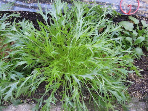 ビニールトンネルをしていない野菜も元気に育っている。風が穏やかで日差しがあるあいだは、暖かさも感じられる。 種から育った水菜もあるが、これは苗を追加した水菜。 100円ショップの種で育った白菜。 半結球するはずのレタス。 これは小さな苗から育ったセロリ。 そして、種から育った防寒なしのロマネスコ。 袋栽培の野菜を丸く並べて、落ち葉と油かすを交互に積み上げて踏み固めてみた。 これくらいの量では無理かもしれないが、温床のように暖かくならないかなと少し期待している。