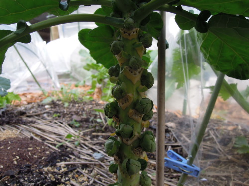 芽キャベツに小さな丸い芽、発見。株は小さいがしっかりと芽キャベツになってきた。 寒さの中で膨らんできた芽キャベツ。甘く美味しく育って欲しい。