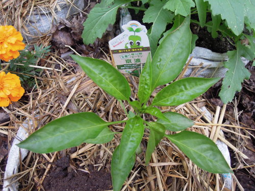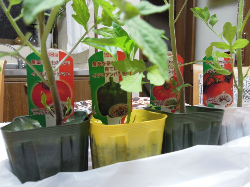 今年は、いつも以上に多品種。 まず、ピーマンは、京波。 メガピーマン。 こどもピーマン。ピーマンはすべて、はじめての品種だ。 トマトは、種から世界一とポンテローザの苗を育てているが、苗を買ったりおとなりの農家からいただいたものを先に植えた。 大型福寿。昔懐かしいトマトらしい。 いただいたサターン。 いただいたレイカ。 サントリーのシュガーミニ。 そして、こちらもサントリーのシュガースイートミニ。 今年は、昨年育てた桃太郎、桃太郎ゴールド、レッドオーレ、ミニキャロル、イエローピコとは、別の品種を探した。いただいたレイカ、サターン,千果は昨年も育てていた。一昨年は、アイコ、イエローアイコなどを育てた。 さて、今年のトマトどうなるだろう。