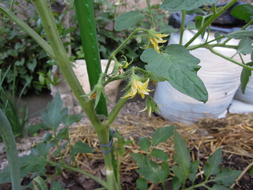 昨日、手に入れたイタリアントマトの苗を定植した。 場所がなかったので生長中の野菜をいくつか移動させた。 イタリアンパプリカ緑の苗は、モザイク病の兆候だったメガピーマンを撤収して植えた。メガピーマンの撤収はかなり残念。 サンピエール(サラダ用)とパンタノ(おつまみ用)は、庄屋長なすを移植して、植えた。 おもしろいかたちで期待のフィオレンティーノ(サラダ用)は、生育不良のブロッコリーを諦めて定植した。定植のために掘り起こしたら、コガネムシの幼虫が、ごろごろ出てきたので、取り除いた。 庄屋長なすの移植先は、タマネギ収穫後の、ナスのライン。手前から二株目が庄屋長なす。 空豆の収穫後に、ハヤトウリとサトイモを植えた。 後列の一番手前の九条ネギの袋にゴーヤ、次が鹿ヶ谷カボチャ、フダンソウ、ロロンとつづく。 手前は、ダイコン3袋にフダンソウ。ロロンやダイコンに集まっていたダンゴムシを捕まえて放り投げていたら、流石に減ってきた。 ダンゴムシはなかなか駆逐できないが、少なくても捕まえた数だけは被害が少なくなるはずだ。 その他、モロヘイアの脇に枝豆。袋栽培トマトの横にツルなしインゲン。袋栽培の枝豆の脇にダイコンの種などをまいたが、これらはどうなるかわからない。 ダイコンは、葉ダイコンで収穫もよいかな。