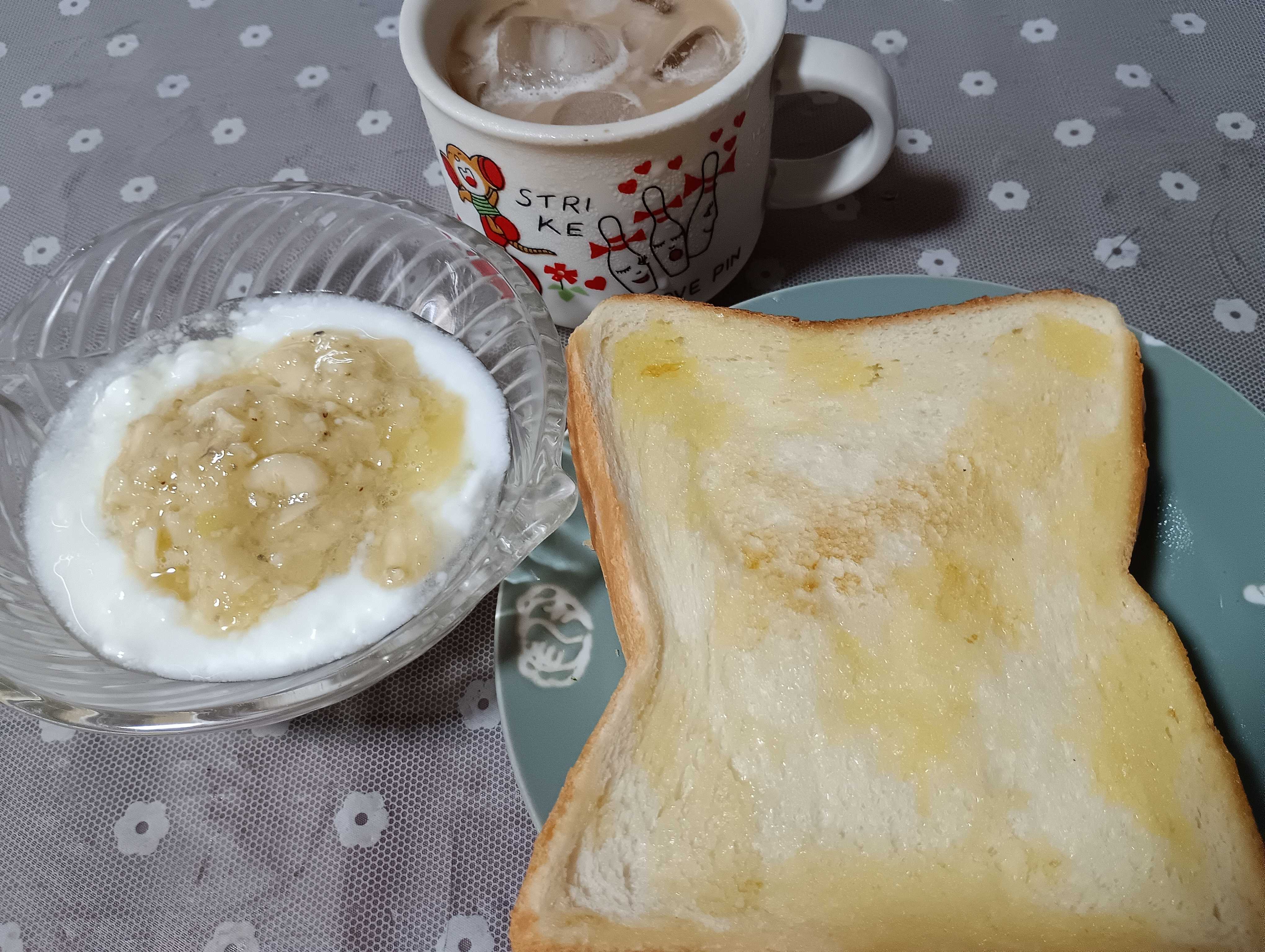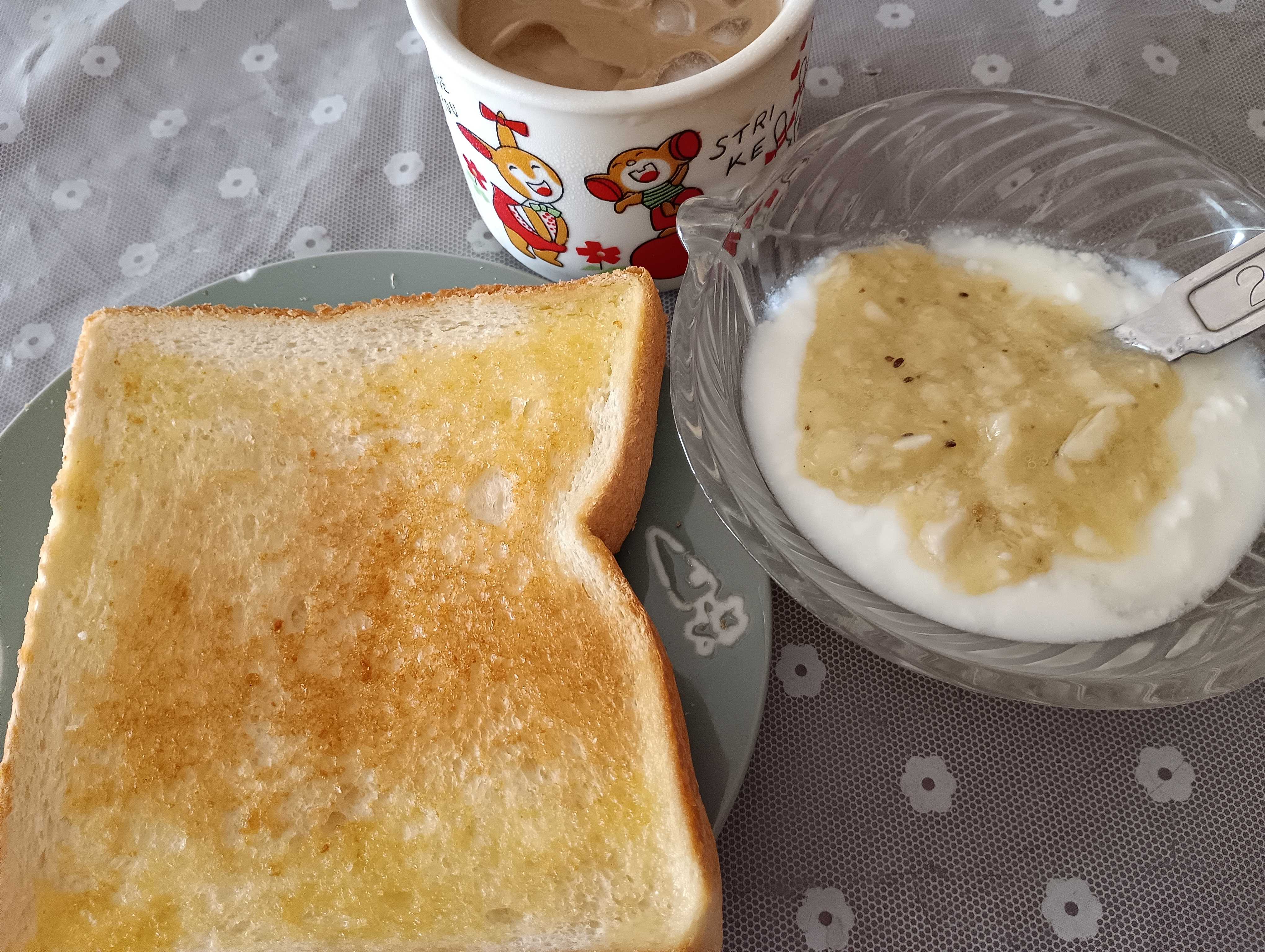 いつもの朝食でスタート。トーストに私はアイスカフェオレ、ゆうちゃん(母)はホット☕ バナナの腸活ヨーグルトには、アーモンドときな粉をトッピング🥣 アーモンドとバナナはチョッパーで調理。ハンドブレンダーのチョッパー機能、ホントに優秀✨反面、ブレンダー機能はほとんど使ってなくて、ちょっともったいない。でもチョッパーだけで事足りちゃうんだよね😅食後、ゆうちゃんはお茶を沸かしたり、手洗いで洗濯したりと、それなりに忙しそう。 ならばと、私も開かずの間の整理をすることに。気になっていた吊りっぱなしのボロカーテンを外して、仕舞いっぱなしだったカーテンに交換🪟ランチは別メニュー。私はキーマカレー、ゆうちゃんは吉野家の冷凍牛丼🍛 アボカドサラダも添えた🥑おやつは2食クリームパン。甘くて幸せ🍞💛夕方の入浴タイム後、ゆうちゃんの足首にダイソーで買ったサンドウエイトを装着🏋️♀️ 「しんどい〜」って言われるけど、最近思い出して再開した筋トレと湯冷め防止のため💪夕飯は海老焼売、小芋の煮物、ニラ入り納豆など。食後に私はヨーロピアンシュガーコーン🍦 そのあと、二人でスプーン一杯ずつ蜂蜜を食べた。ちょっとした習慣🍯夜はネットスーパーで注文🛒 時短になるっていうけど、私はいつも色々物色しちゃって時間がかかるんだよね🌀疲れたから寝よう。おやすみ🌙