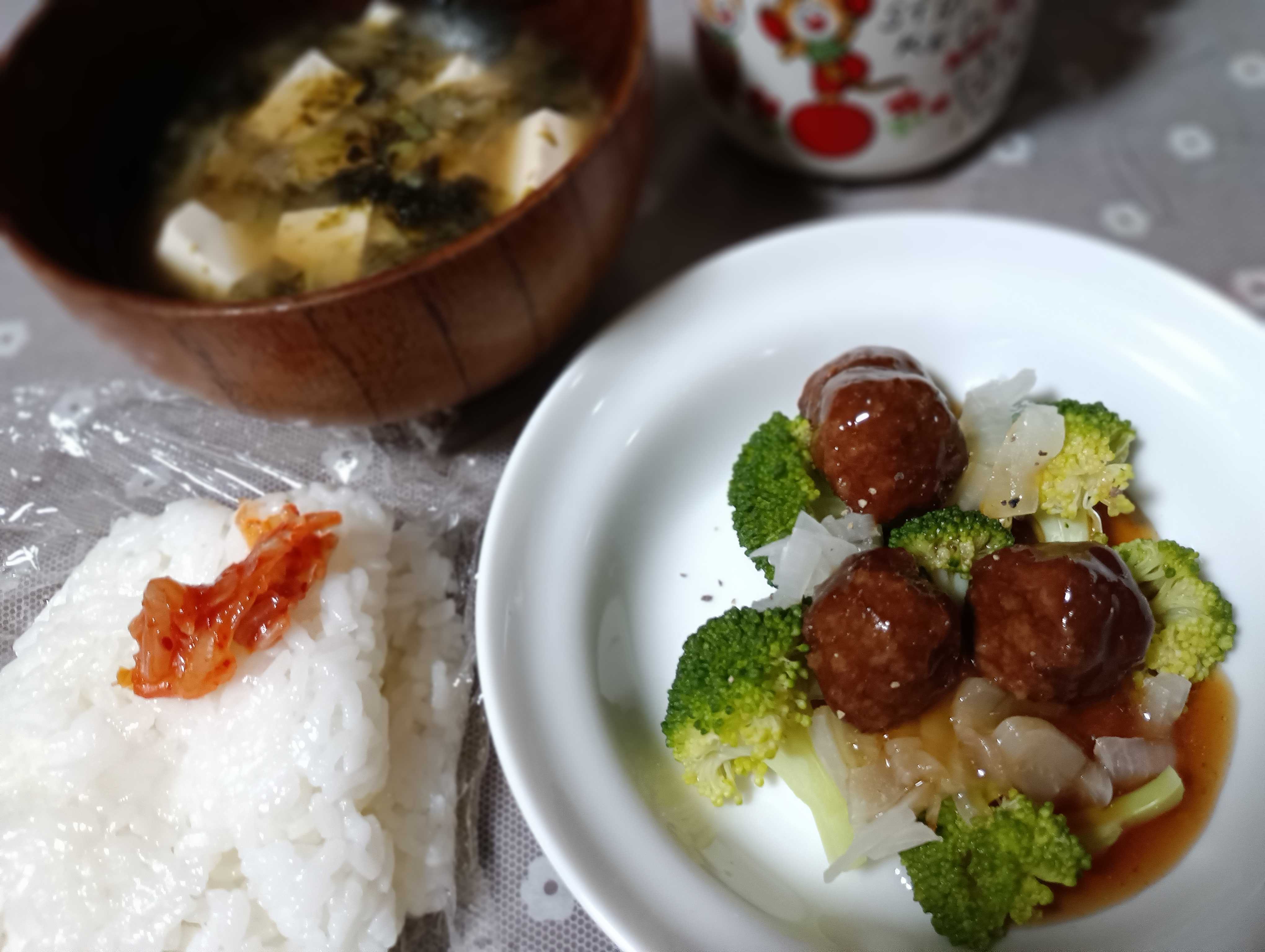 夕飯はミートボール、焼き海苔と豆腐の味噌汁🍲