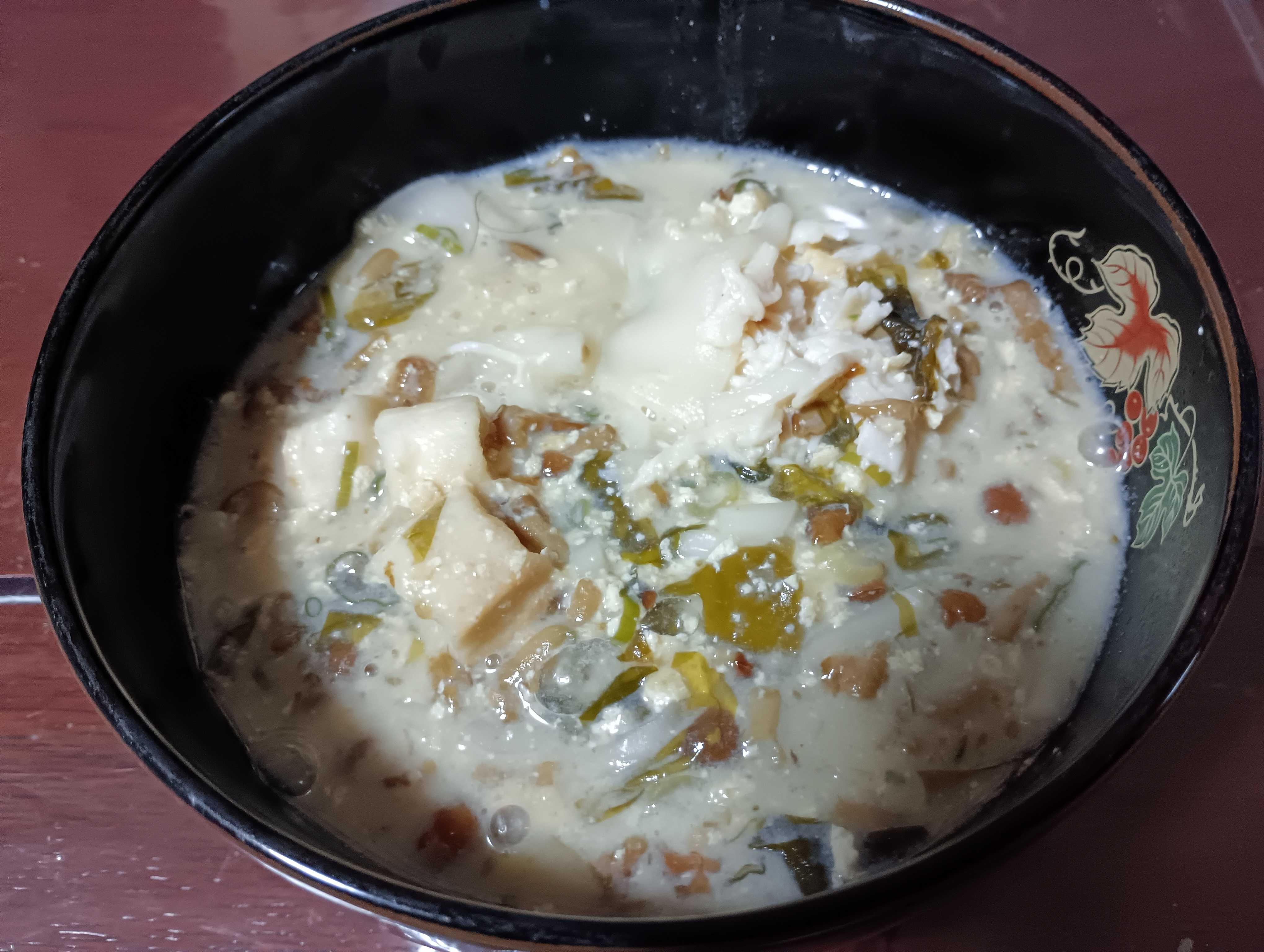 豆乳うどん。見た目はイマイチでも味は悪くなかった🍲