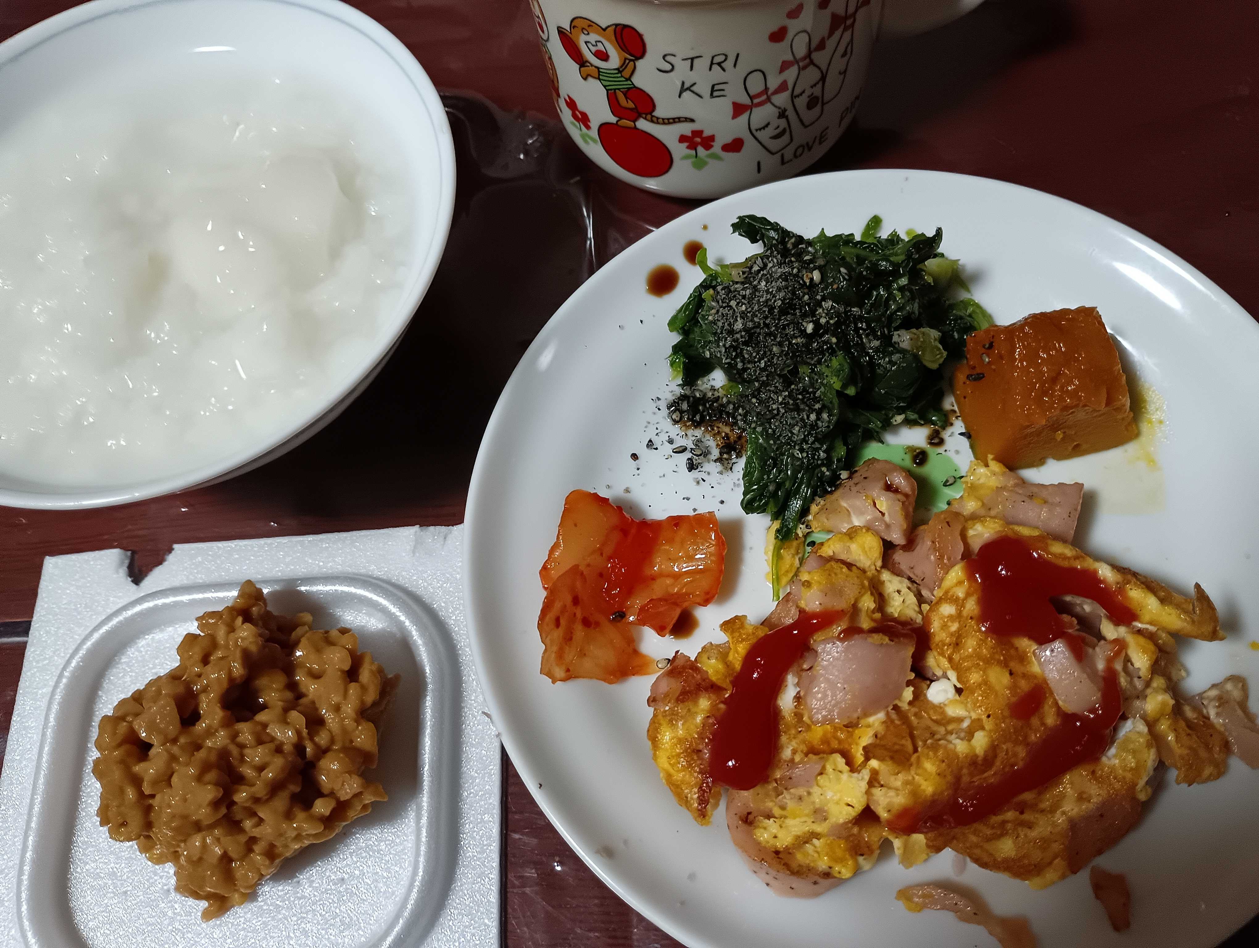 きな粉入り納豆、しゃぶしゃぶ餅入りのおかゆ🍚