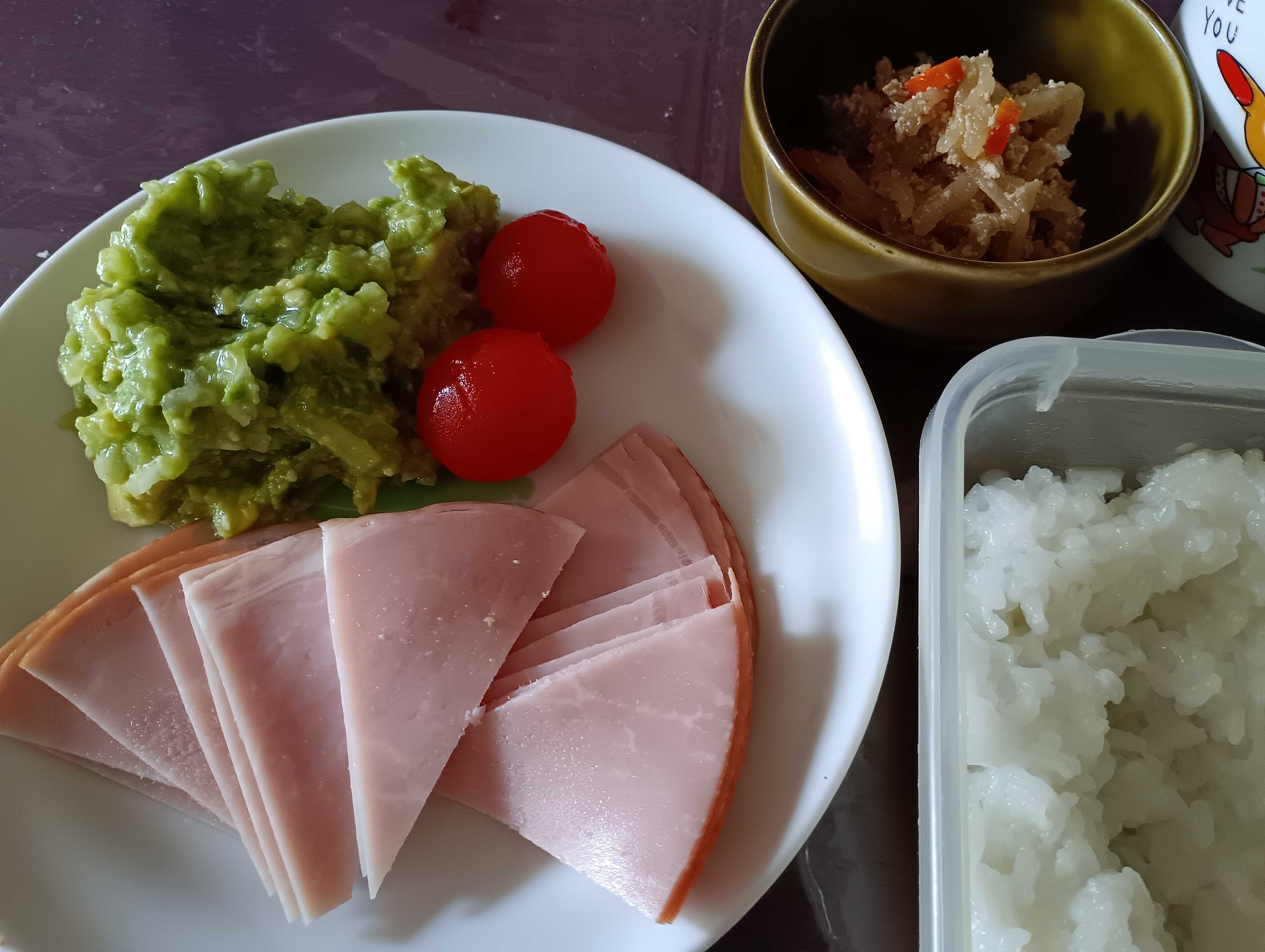 ランチはハム、アボカドサラダ、切り干し大根。ゆうちゃんはハムが