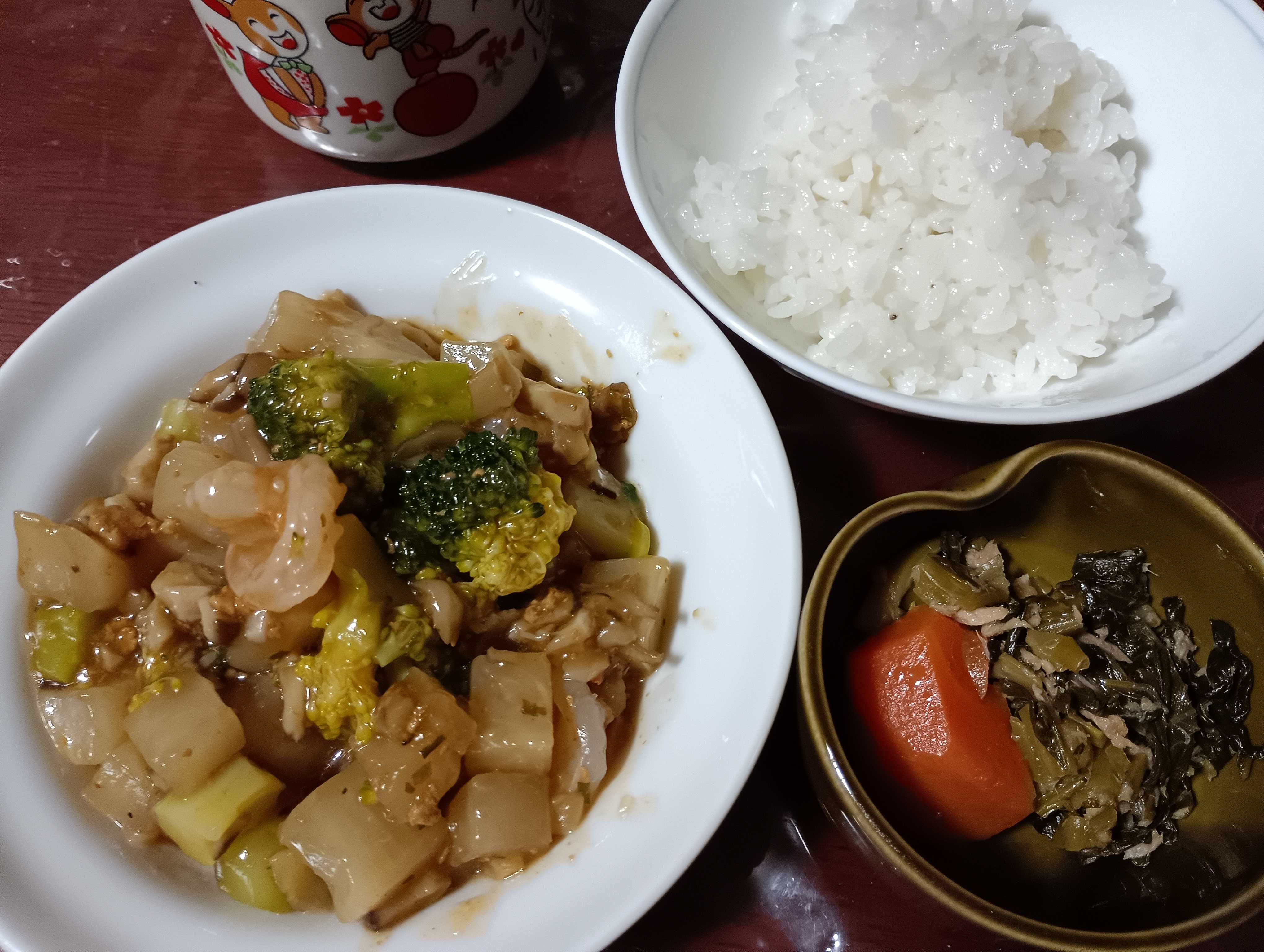メニューは大根とむき海老の麻婆風。