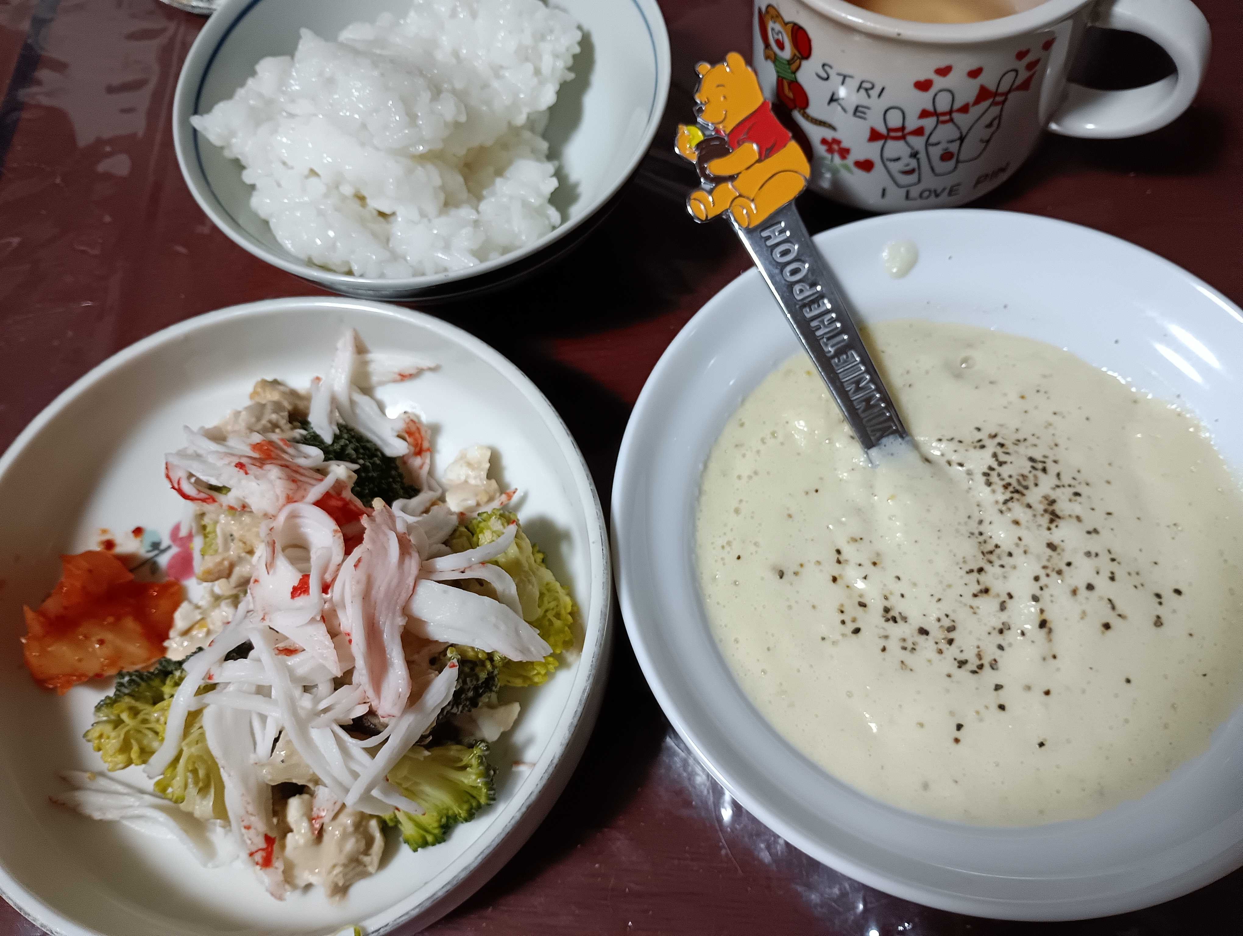 夜はブロッコリーと卵のサラダ&ポタージュ🥦🥚