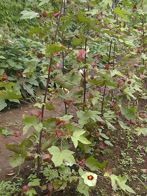 綿の花を紹介します。 先日のミズヒナゲシにも似た黄色のカワイイ花です。秋になると実が割れて綿が飛び出してくるのですよ。 昔はたくさん栽培されたのでしょうが、今は化学繊維が多く使われたり、海外の安い製品に押されたりで珍しい花になってしまいました。